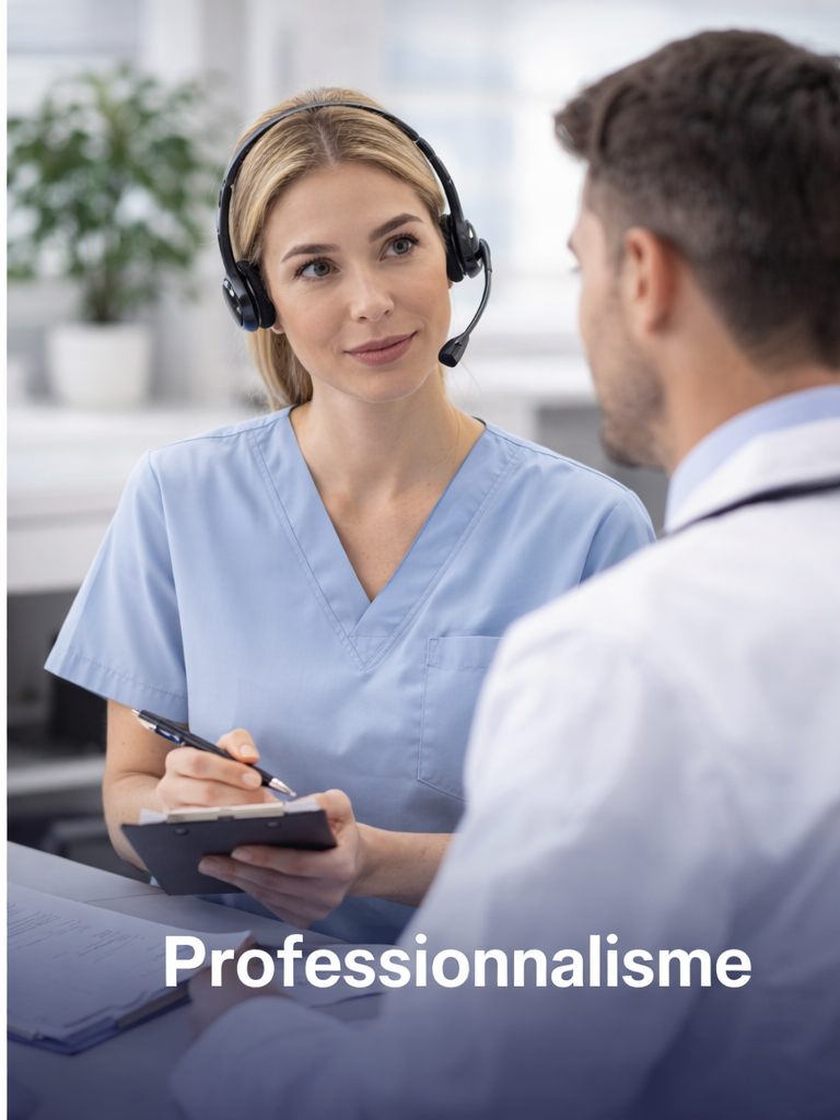 Parce que la gestion des appels joue un rôle essentiel dans la relation patient-médecin, nous accordons une attention particulière à la qualité de l’accueil téléphonique. Chaque patient est pris en charge avec écoute, professionnalisme et respect. C’est dans cette optique que nous mettons à disposition une télésecrétaire médicale dédiée, formée à votre organisation et intégrée à votre fonctionnement.
